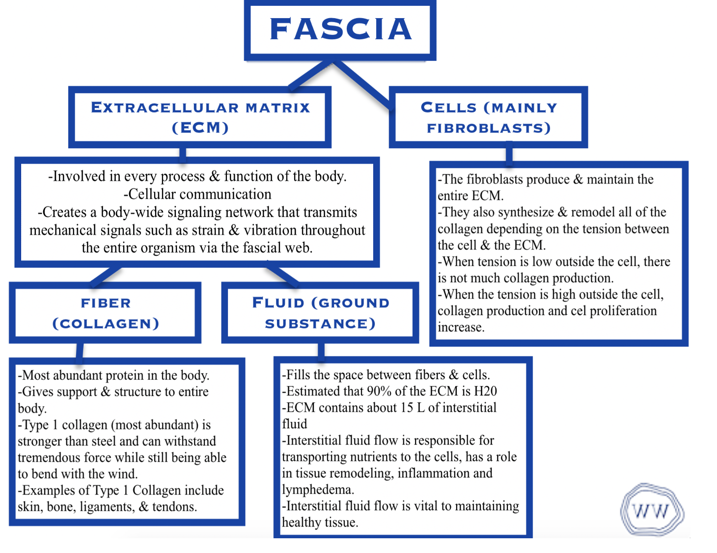 Irrespective of the population you work with, nobody can argue (logically) that health isn’t an absolute vital component to training success. A mistake coaches often make, especially those who work with high level athletes, is assuming because the athlete is elite in their sport it must mean their health is top tier. This is a poor assumption to make, as there are plenty of high-level athletes who, medically, would classify as unhealthy. The fascial system plays a major role in general health and biological function. Among the many roles, a few to make note of here include cellular communication, hormone transportation, fluid distribution and circulation (blood, lymph, interstitial fluid), emotional and stress management, tension and fluid distribution, and perhaps even a key role in processing toxins and neurotoxins from our system (1,2).