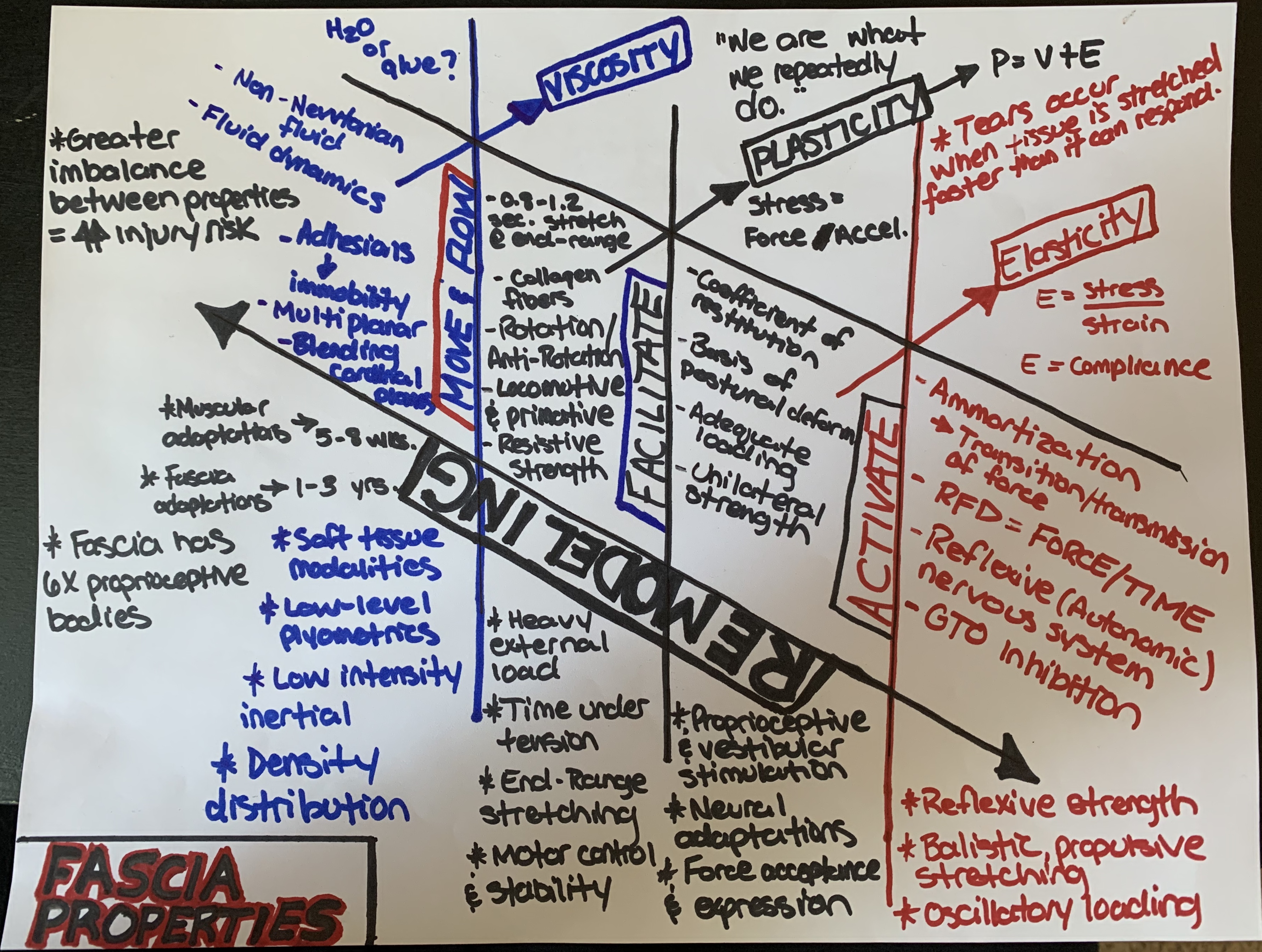 If nothing else, we want to consider the three main properties of fascia- viscosity, plasticity and elasticity. The combination and balance of these three properties is the quintessential base for “training the fascial system.” Again, it’s important to understand that the specific mode or application is only limited by what you have access to and what you can coach proficiently. There’s no real “right or wrong”, just better or worse for certain adaptations. But if we can better understand these properties, I’m confident we can improve athlete function and training overall.