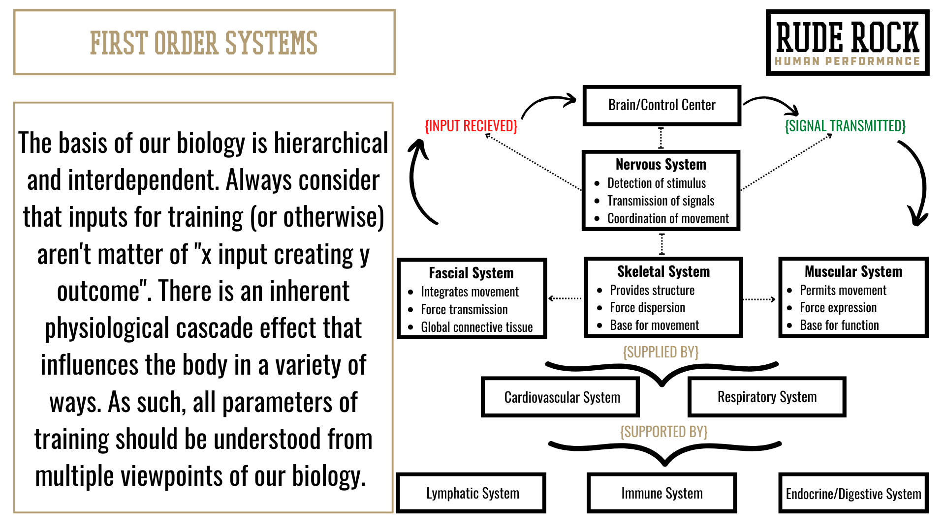 Human movement is fluid, it’s harmonious. Proficient movement is inextricably reliant on coordination and timing, it requires synergy. We are not simple machinery, we aren’t just some mechanical assembly of interchangeable parts that can be described or defined by simple constructs or independent lenses. The human body is a symphony of individual components performing very specific functions that all coalesce as a unified system while being governed by a central conductor.