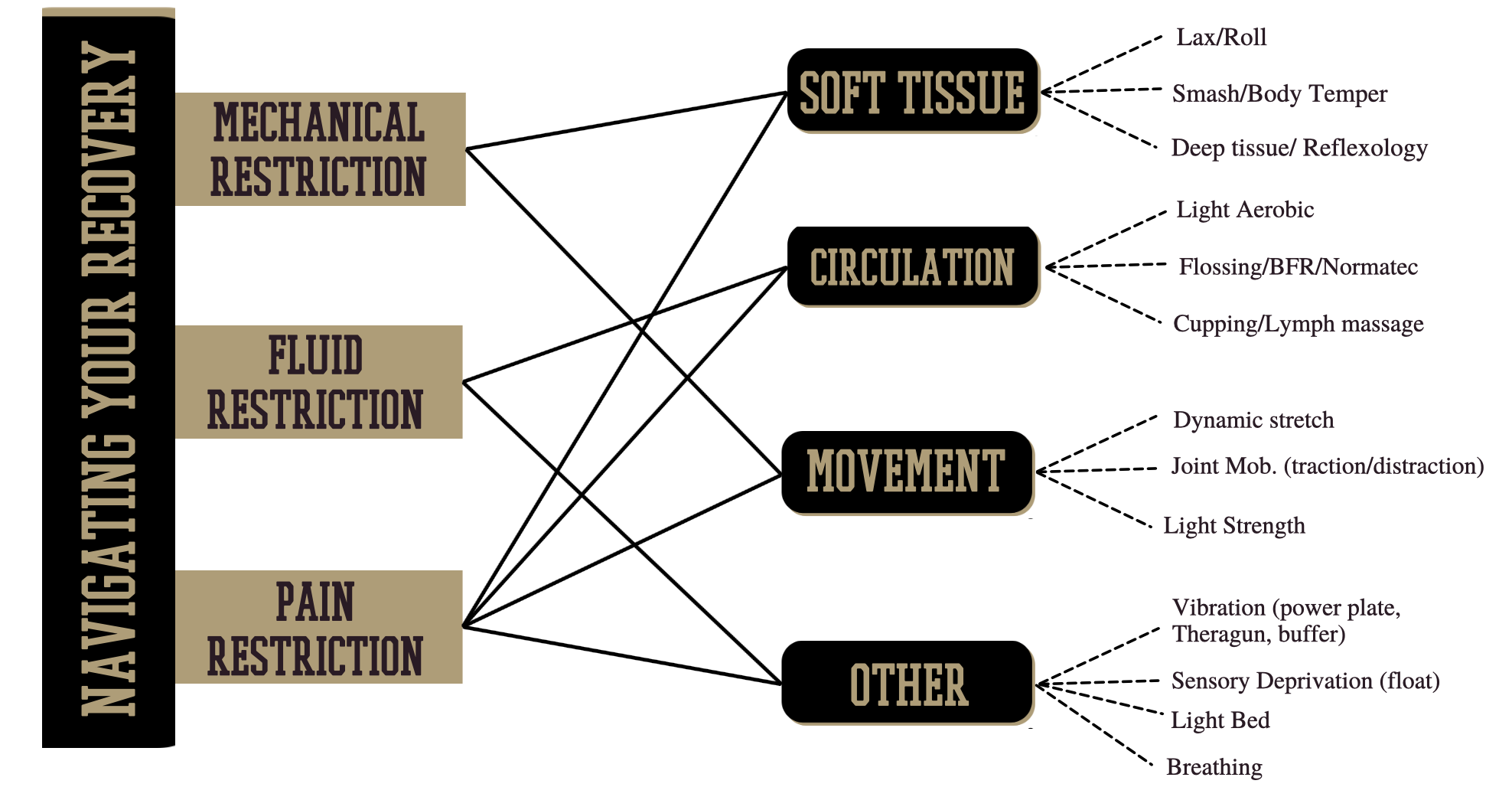 When the programming prescription is appropriately distributed, there should be less demand for long bouts of recovery, as it is already accounted for on both ends (appropriate programming + proactive recovery bouts). Navigating your recovery doesn’t need to be difficult, and the specifics as to what’s included can be as simple or sophisticated as you’d like and will largely be determined by what you have access to. But in a nutshell, the priority is to remove load, keep heart rate and central nervous system demand low, and stimulate the mind. Don’t confuse downregulation for doing nothing, there is still value to be had despite intensity being low.